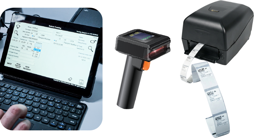The Smart Cryo-Tools System is a comprehensive traceability ecosystem anchored by the ZEUS Touch-Screen Tablet and Software for secure patient registration and record management. The system minimizes human error by identifying the exact in-tank location of embryos and oocytes-tank, canister, cane, and goblet-while integrating with a wireless barcode reader for fast and accurate scanning. Liquid nitrogen–resistant barcodes, generated directly via the tablet, ensure long-term specimen security and workflow efficiency.